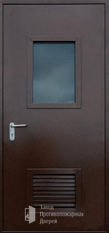 Модель Противопожарная Однопольная дверь с круглым стеклом ДПМ-01-EIW60 с решеткой