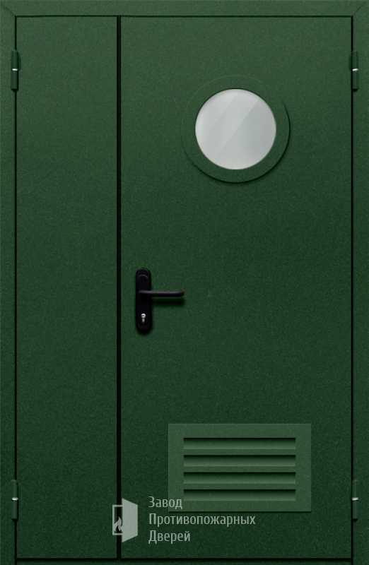 Противопожарная Полуторная дверь с круглым стеклом ДПМ-02-EIW30 с решеткой |
