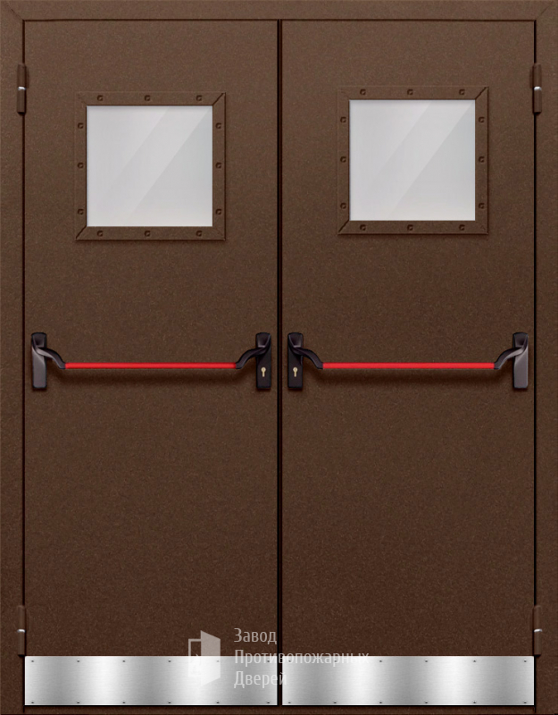 Маркировка Противопожарная Двупольная дверь с квадратным стеклом ДПМ-02-EIW30 с антипаникой