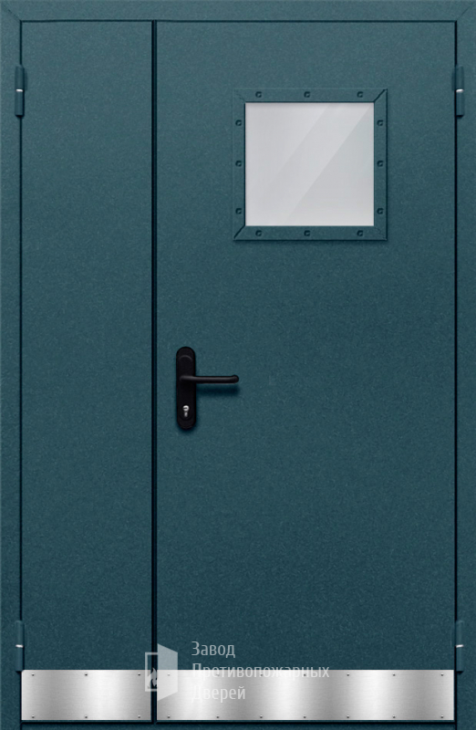 Маркировка Противопожарная Полуторная дверь с квадратным стеклом ДПМ-02-EIW30