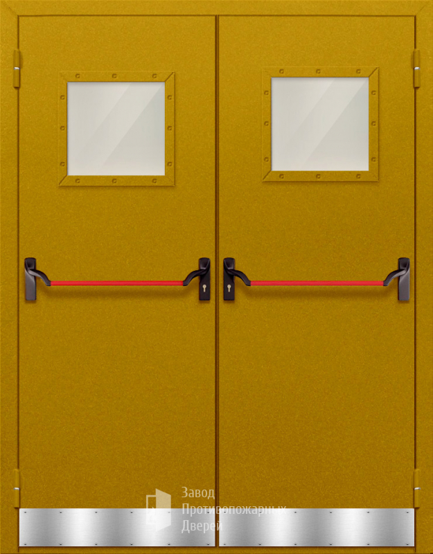 Маркировка Противопожарная Двупольная дверь с квадратным стеклом ДПМ-02-EIW15 с антипаникой