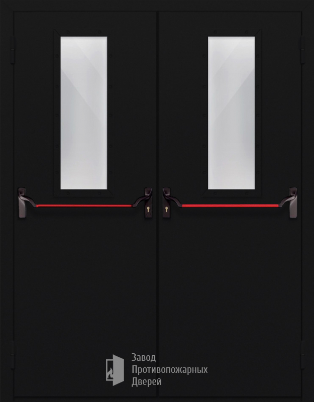 Маркировка Противопожарная Двупольная дверь с прямоугольным стеклом ДПМ-02-EIW15 с антипаникой