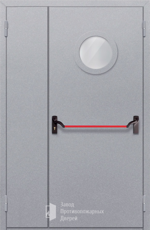 Противопожарная Полуторная дверь с круглым стеклом ДПМ-02-EIW60 с антипаникой |
