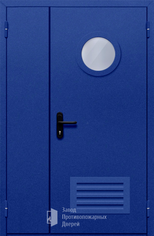 Маркировка Противопожарная Полуторная дверь с круглым стеклом ДПМ-02-EIW60 с решеткой