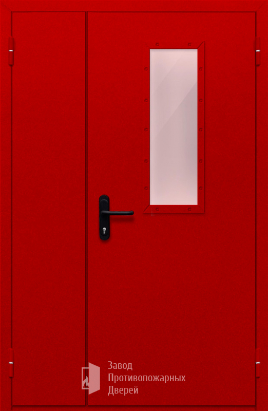 Маркировка Противопожарная Полуторная дверь с прямоугольным стеклом ДПМ-02-EIW60
