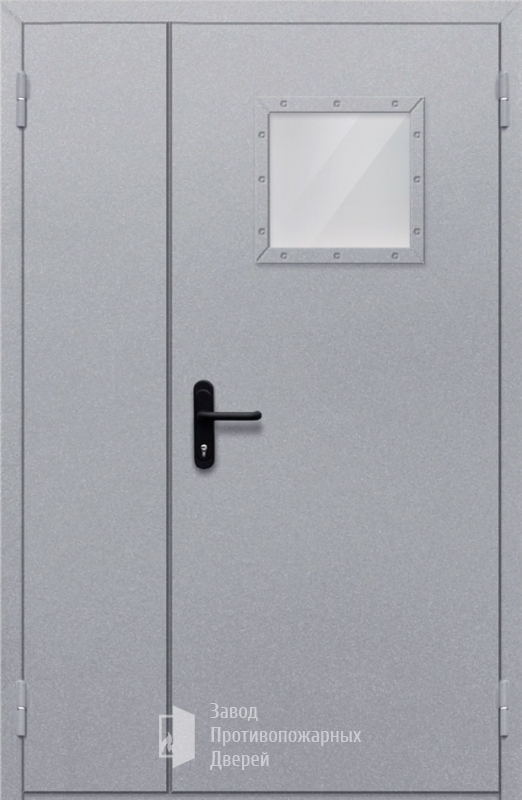 Маркировка Противопожарная Полуторная дверь с квадратным стеклом ДПМ-02-EIW60